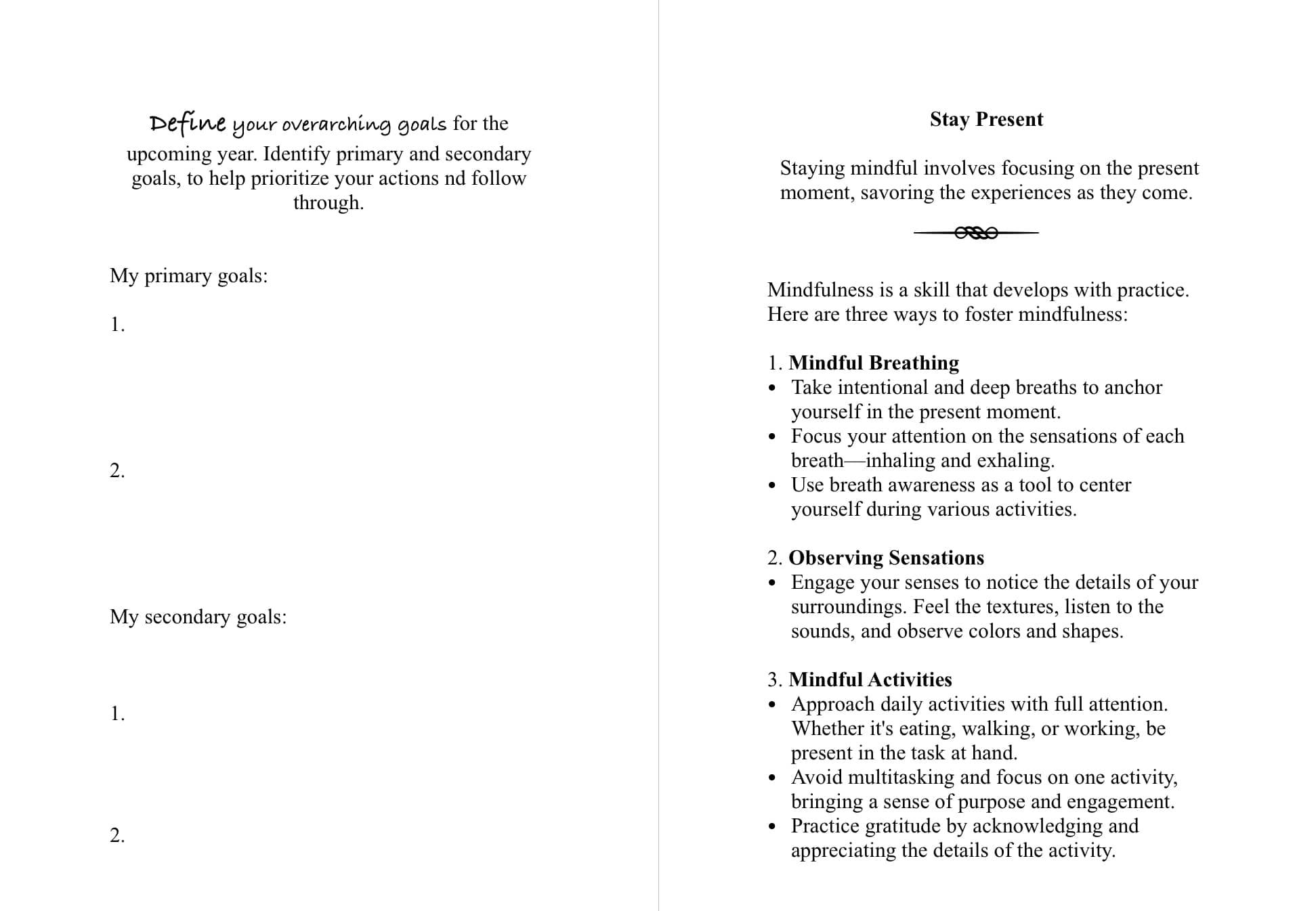 Set goals through mindful reflection. This journal is designed to guide you through the process.